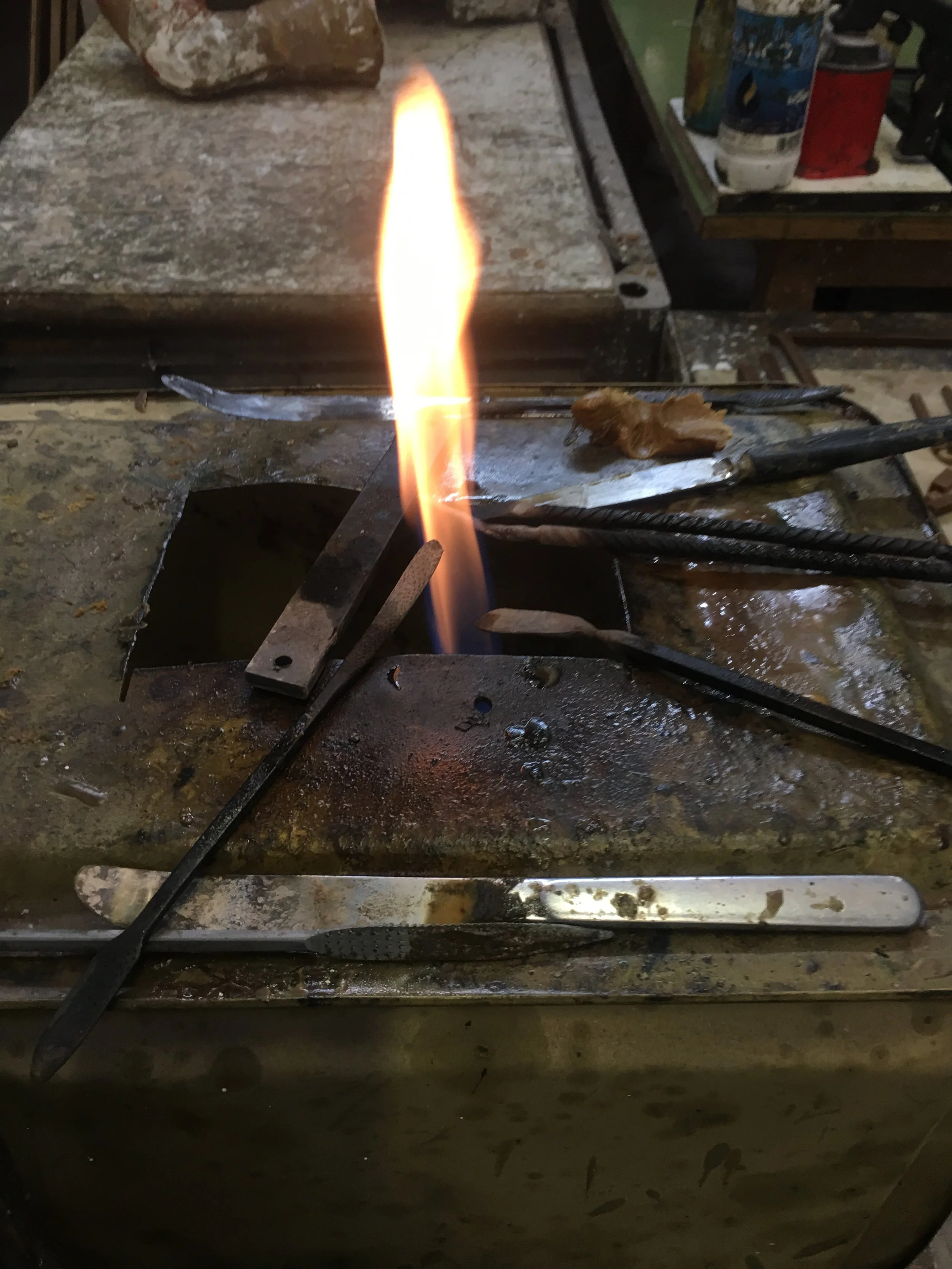 Tools are heated to make working the wax easier, It is important to get a feel for how hot or cold you want the tools, too much heat melts more than you want, and not enough heat gives rough sloppy work.