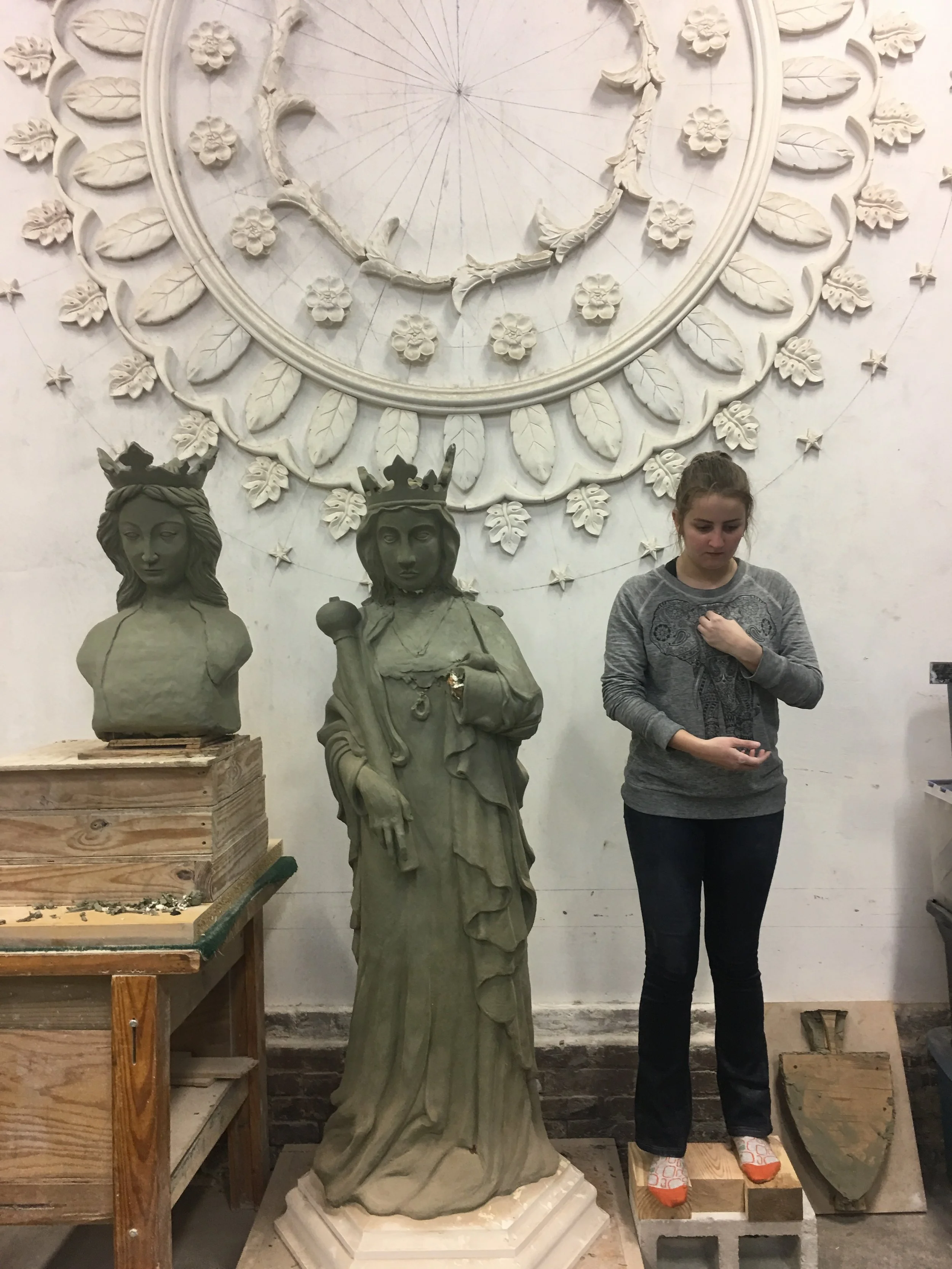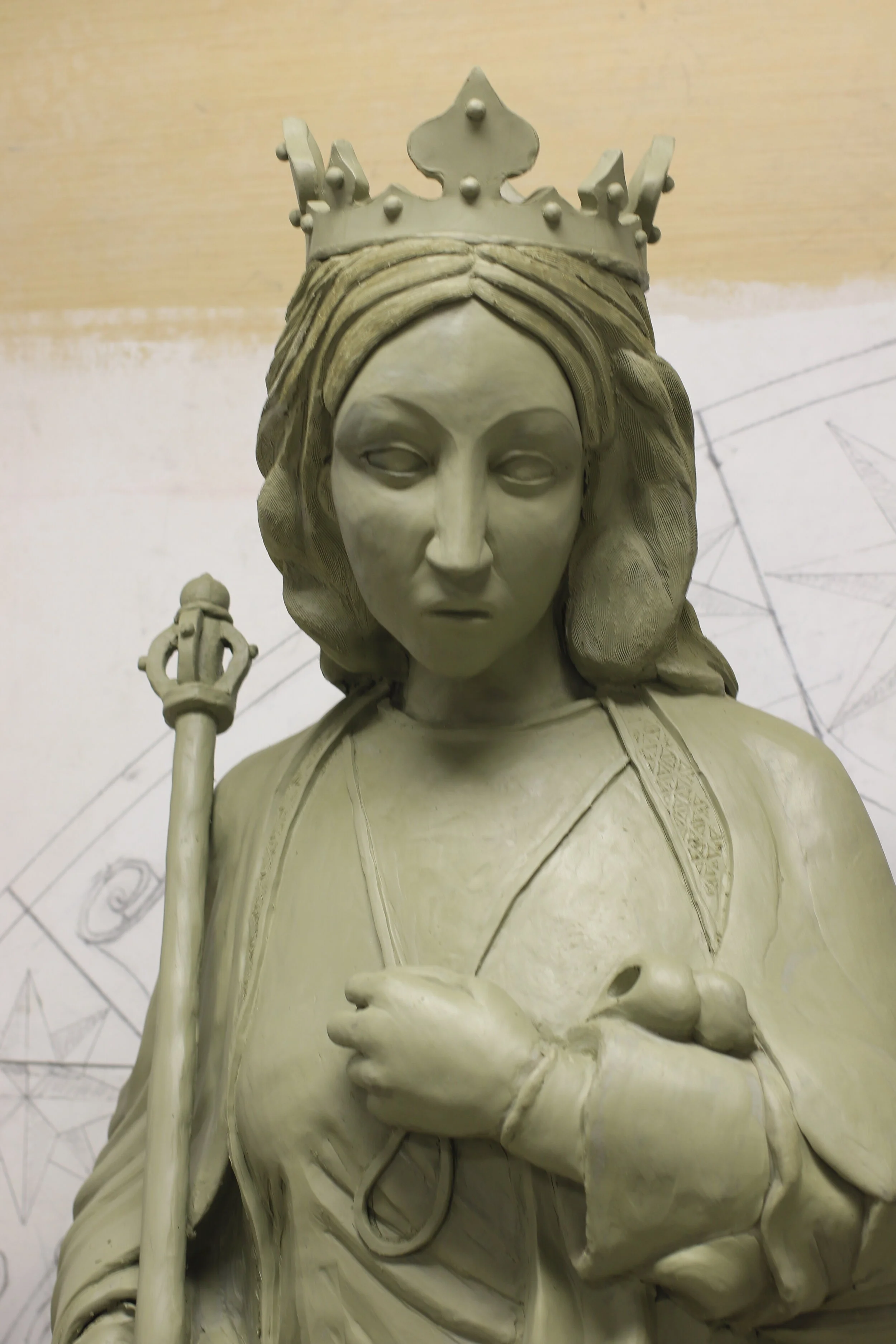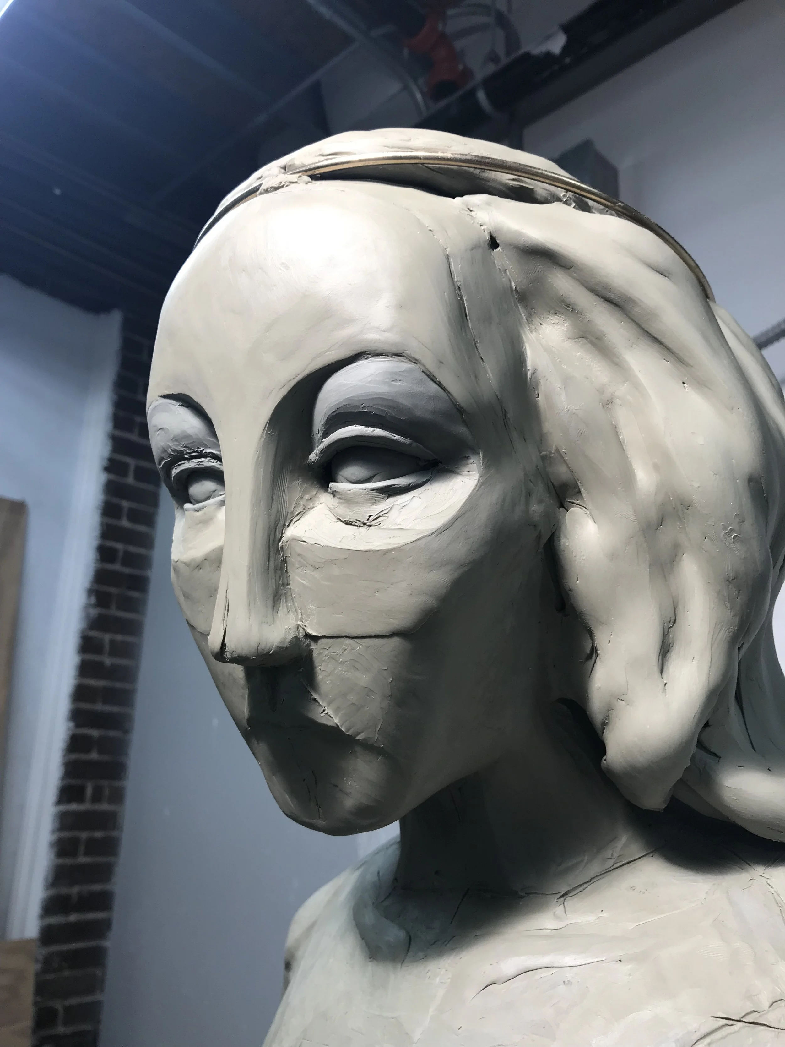 For this project I was asked by my instructor to make adjustments to an existing model of Queen Eleanor completed by another student. I used a live model to adjust the proportions and changed the pose of the statue to be more upright. In all stages I would consult historical images of an existing statue of Queen Eleanore in England but at the same time I wanted to avoid a direct copy, as the original statue is in relief and the project I was working on was to be in the round.
