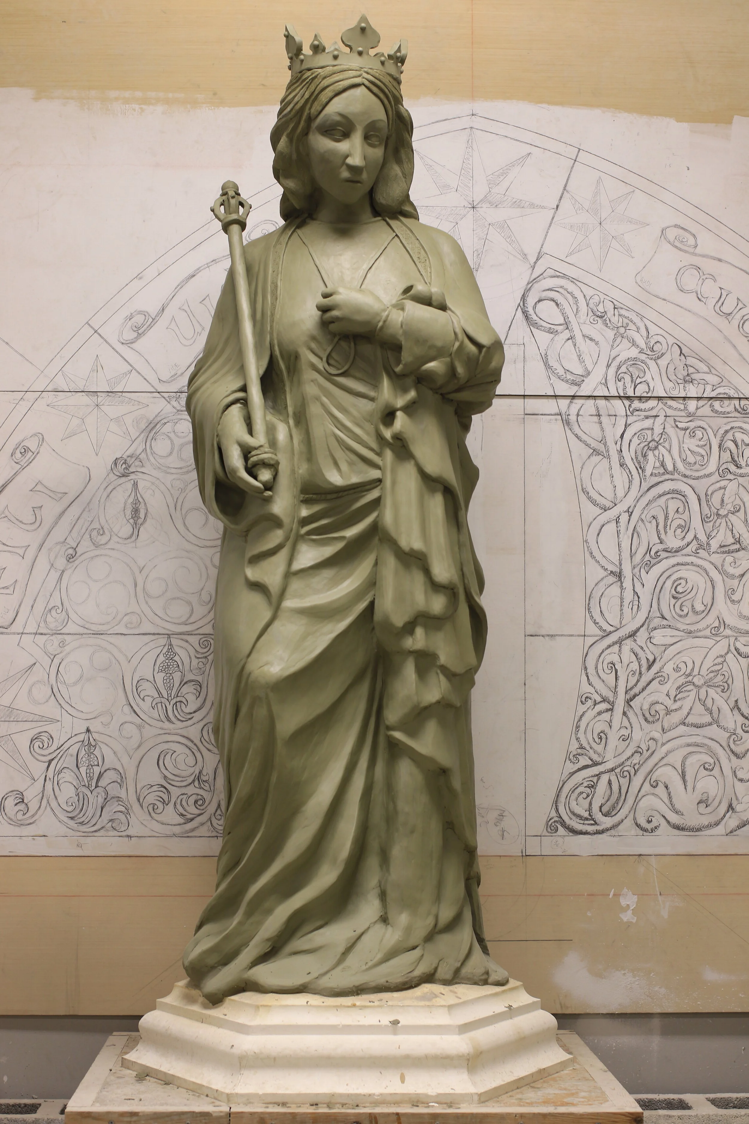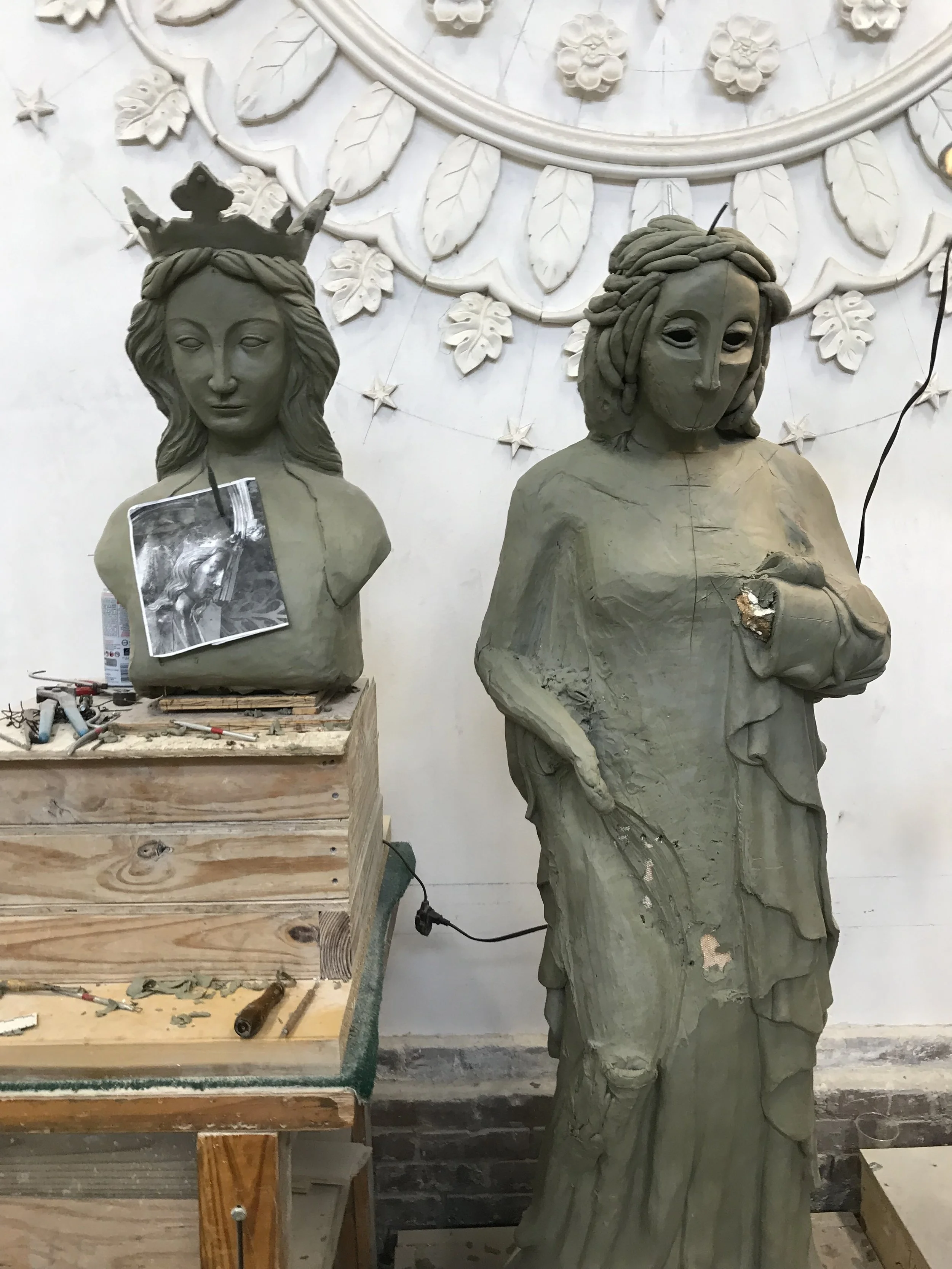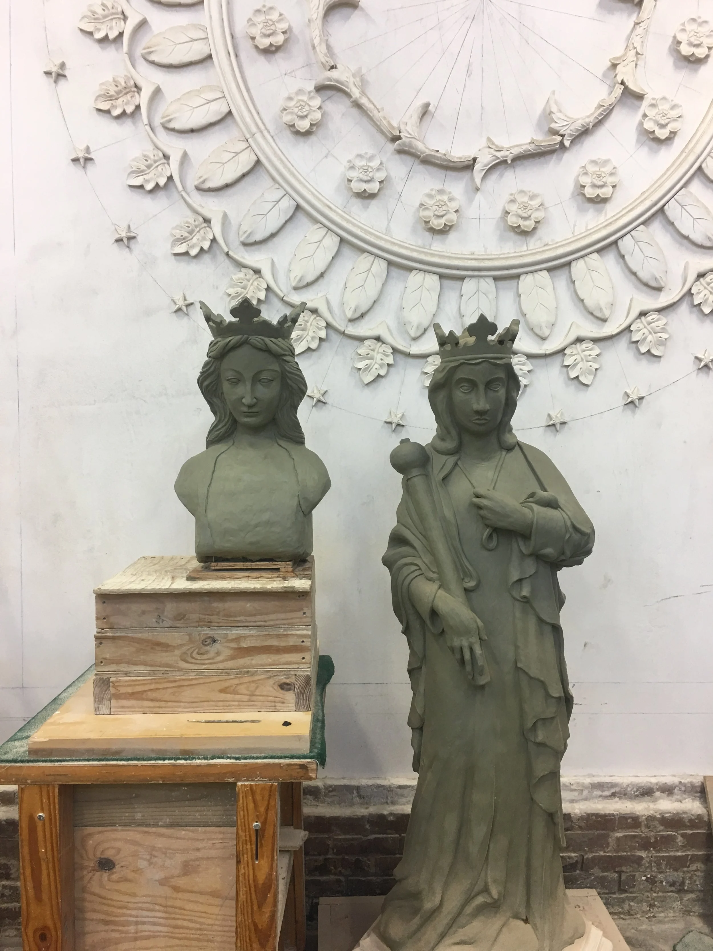 For this project I was asked by my instructor to make adjustments to an existing model of Queen Eleanor completed by another student. I used a live model to adjust the proportions and changed the pose of the statue to be more upright. In all stages I would consult historical images of an existing statue of Queen Eleanore in England but at the same time I wanted to avoid a direct copy, as the original statue is in relief and the project I was working on was to be in the round.