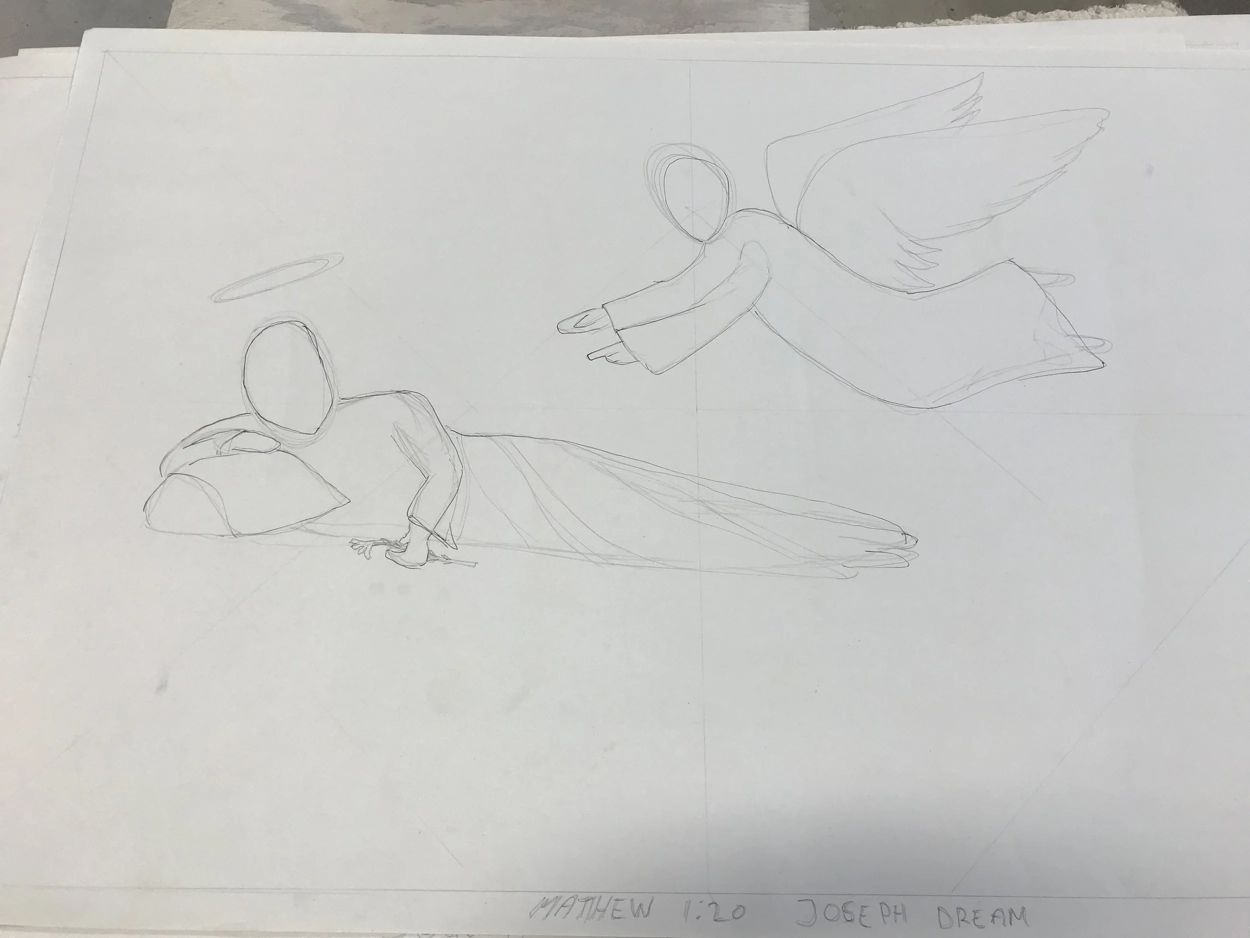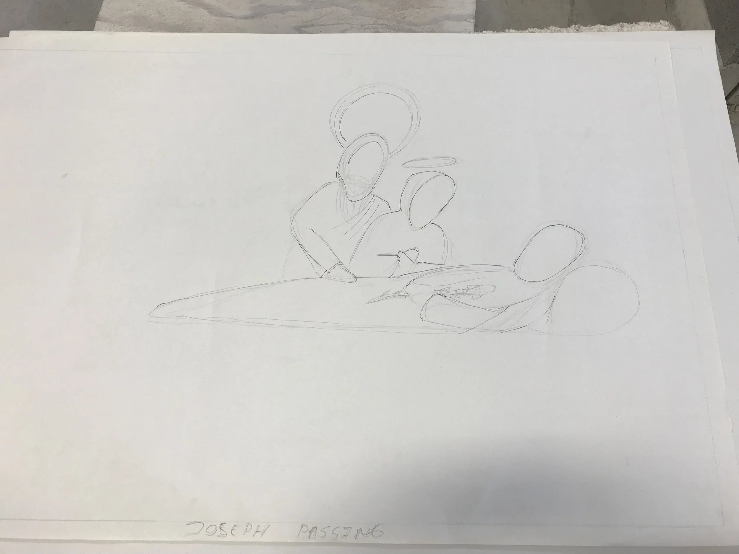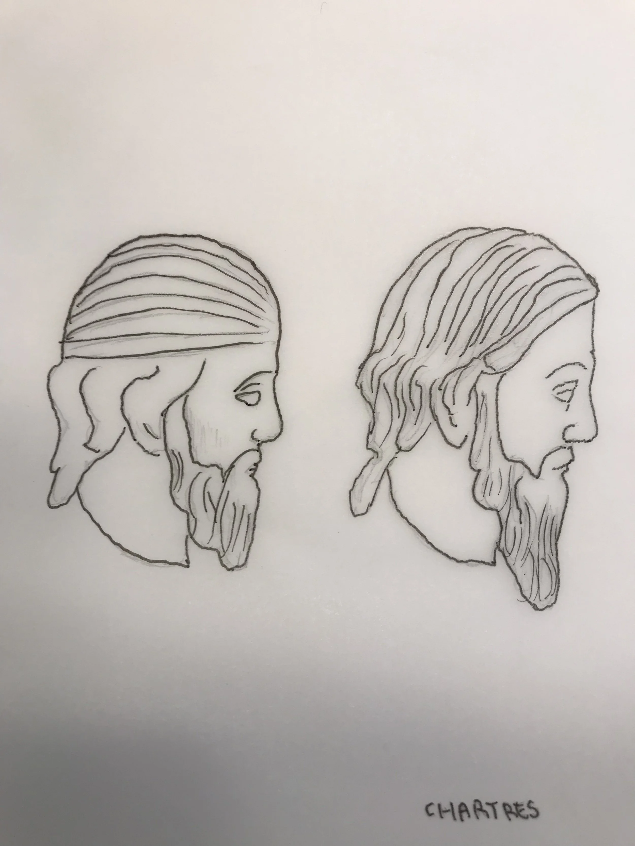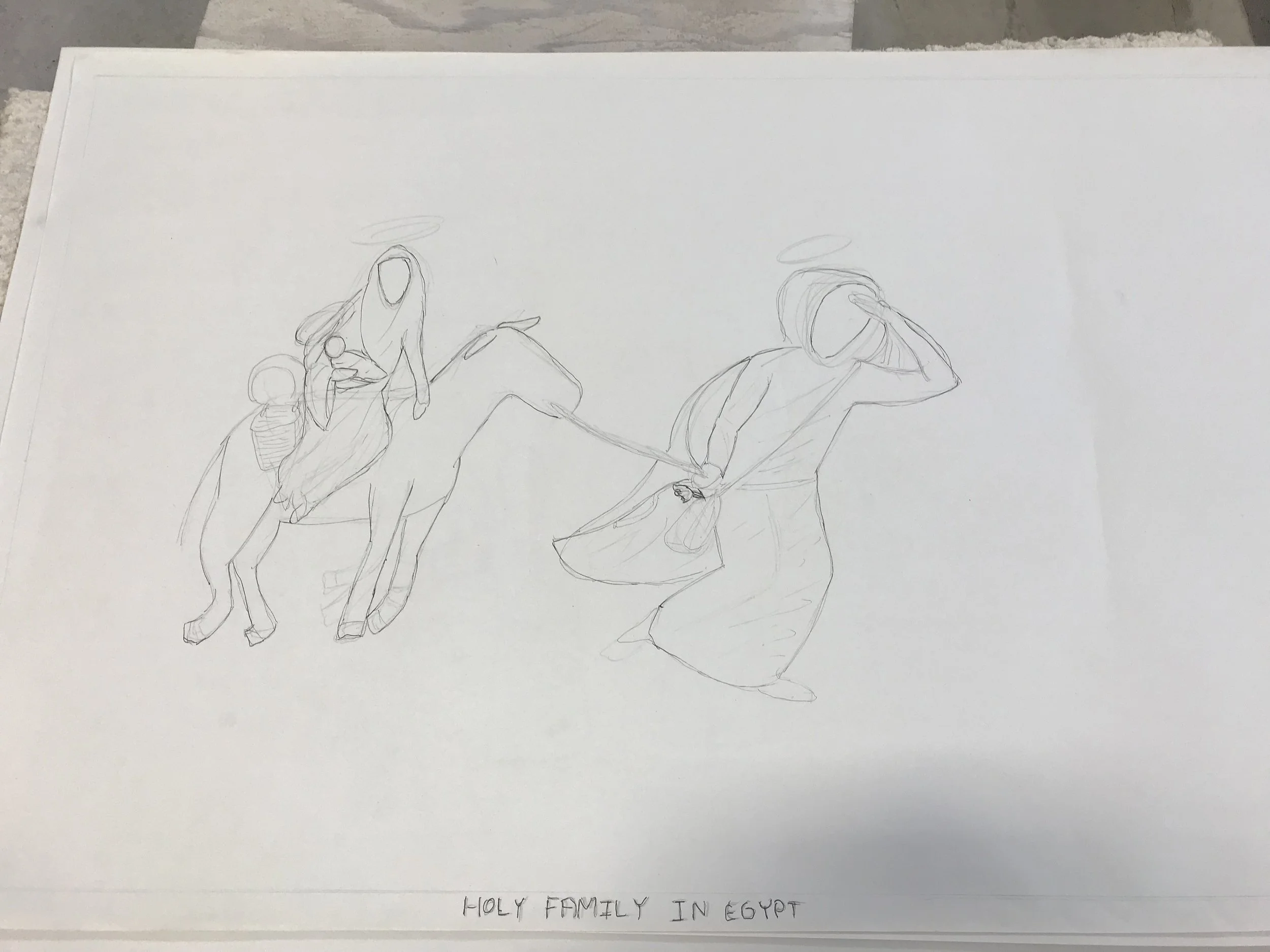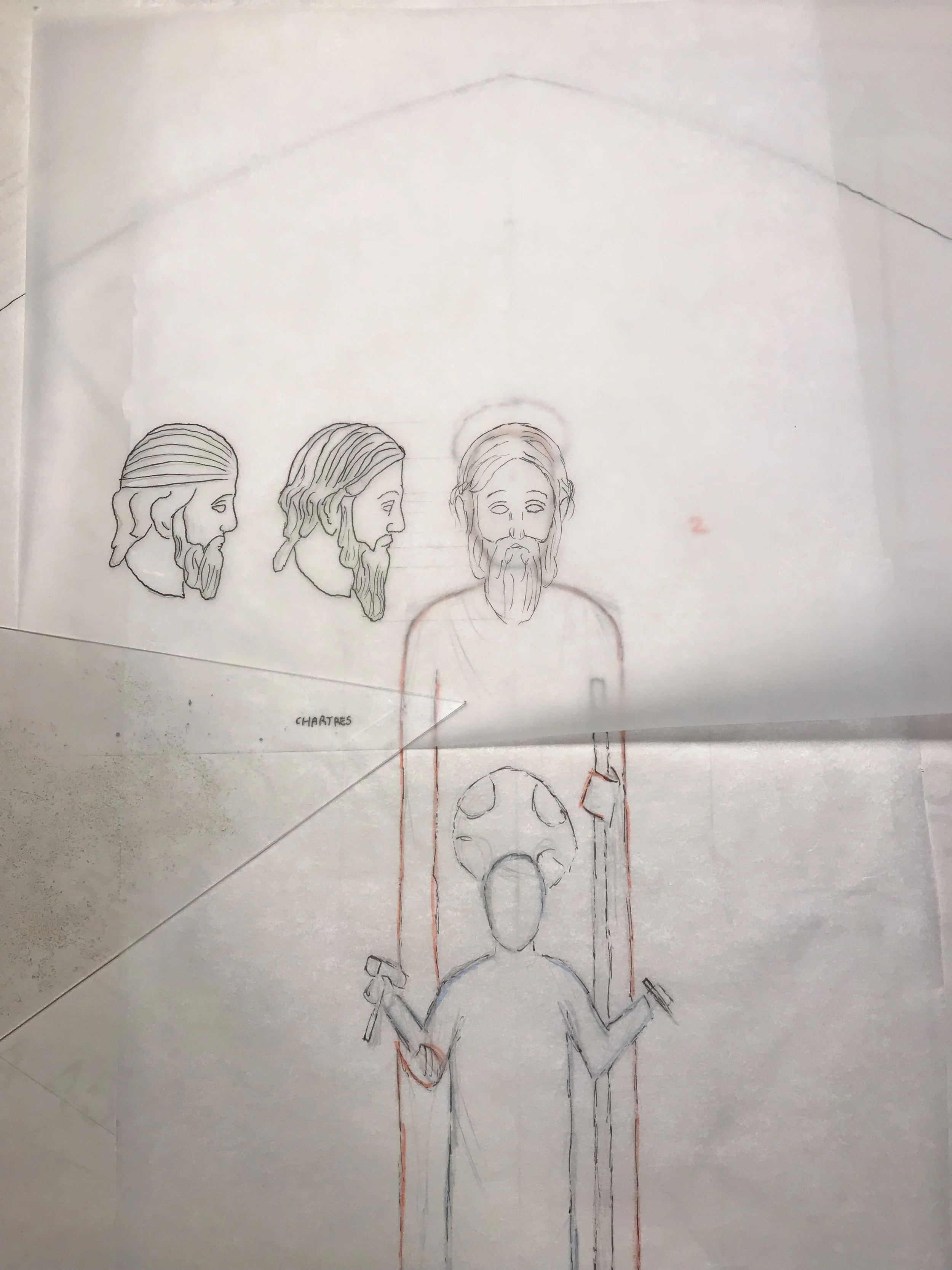 For my senior capstone project I was assigned to work on a project for a client who was overseeing the construction of a seminary in North Carolina. The initial project was for a tympanum that would stretch over the main entrance of the structure. Initial sketches were worked on of various religious scenes and working closely with the client, one central scene inspired from a sculpture of Abraham in Issac in Chartes Cathedral was chosen as a starting point.